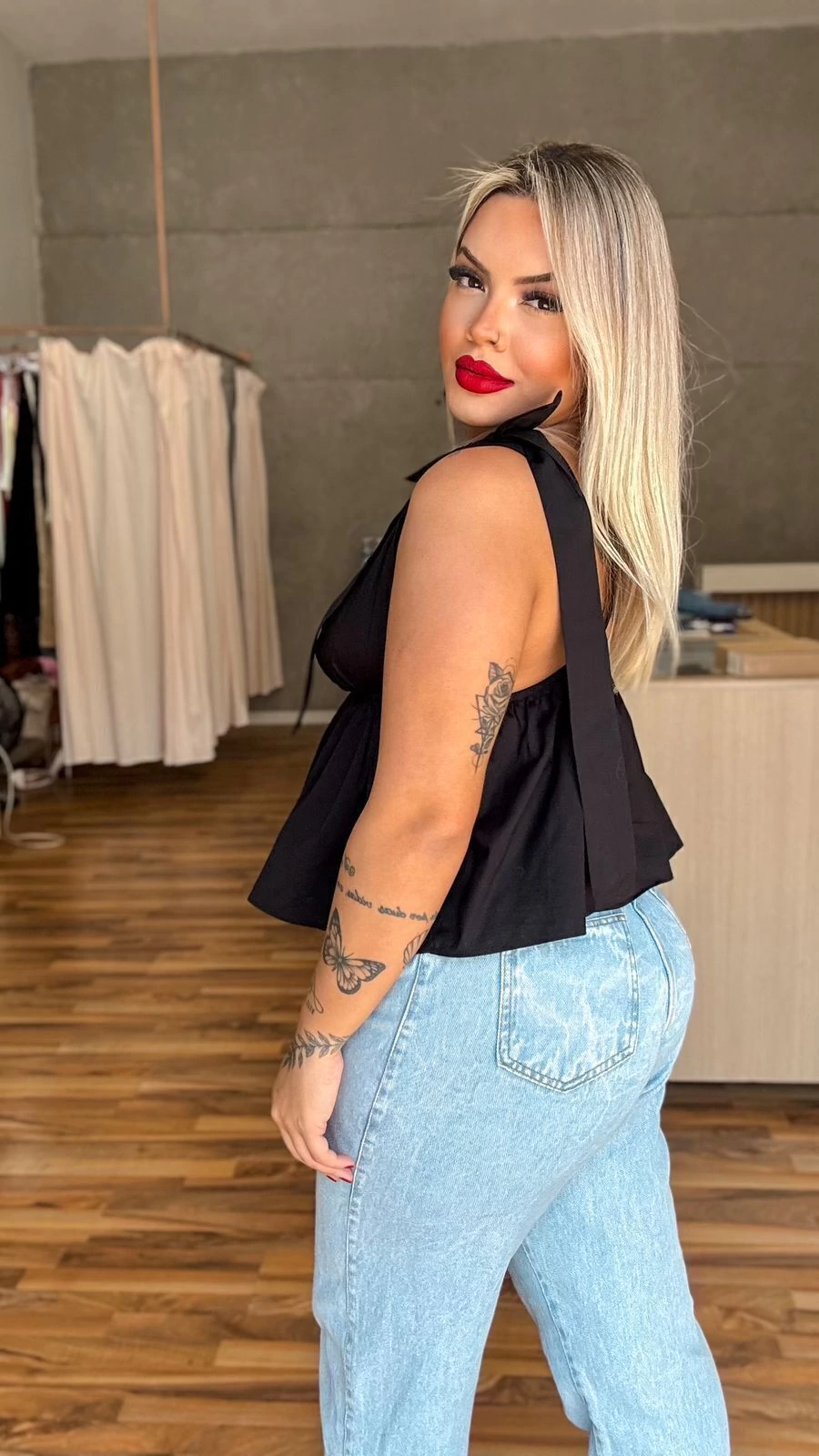 Alças nao são reguláveis e possui um laço na altura do ombro, dando um toque charmoso e romântico na peça.