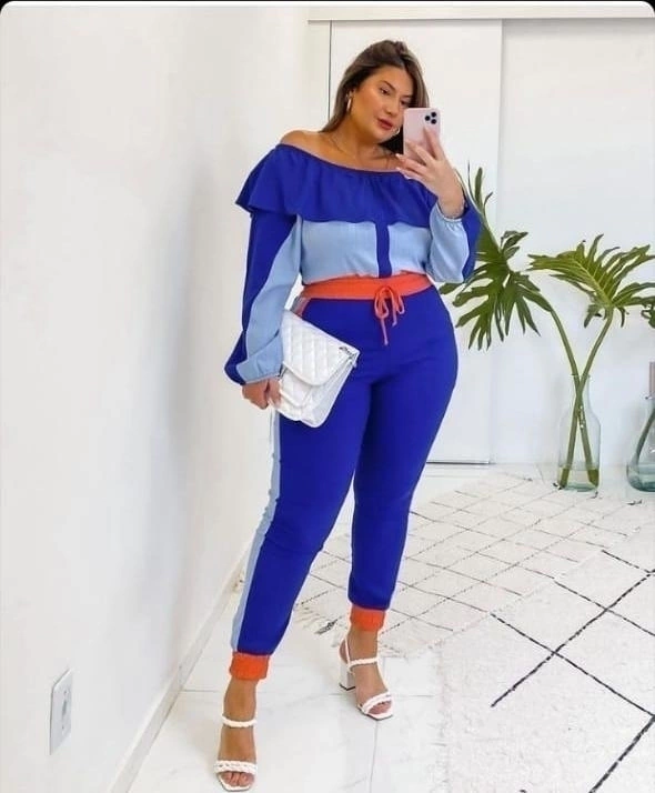 Blusa ombro a ombro com punho. Calça jogger com elástico na cintura. Tecido : Viscolinho. P 40 - M 42 - G 44 - GG 46 - G1 48