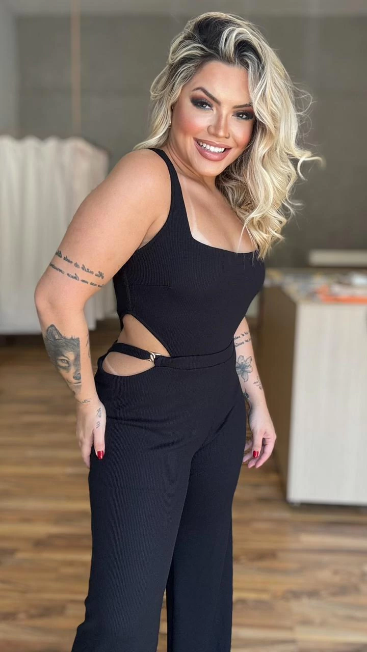 Calça pantalona com recorte equilibrado na medida certa na área da cintura com lindos detalhes em dourado.