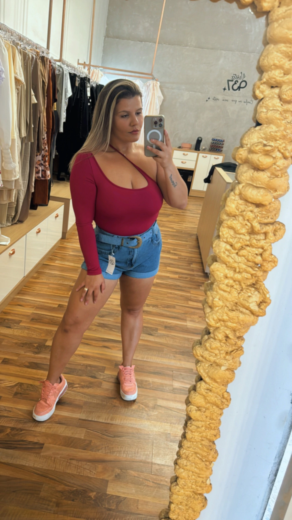 Shorts jeans modelo 100% algodão ou seja, não possui Lycra, cos alto.