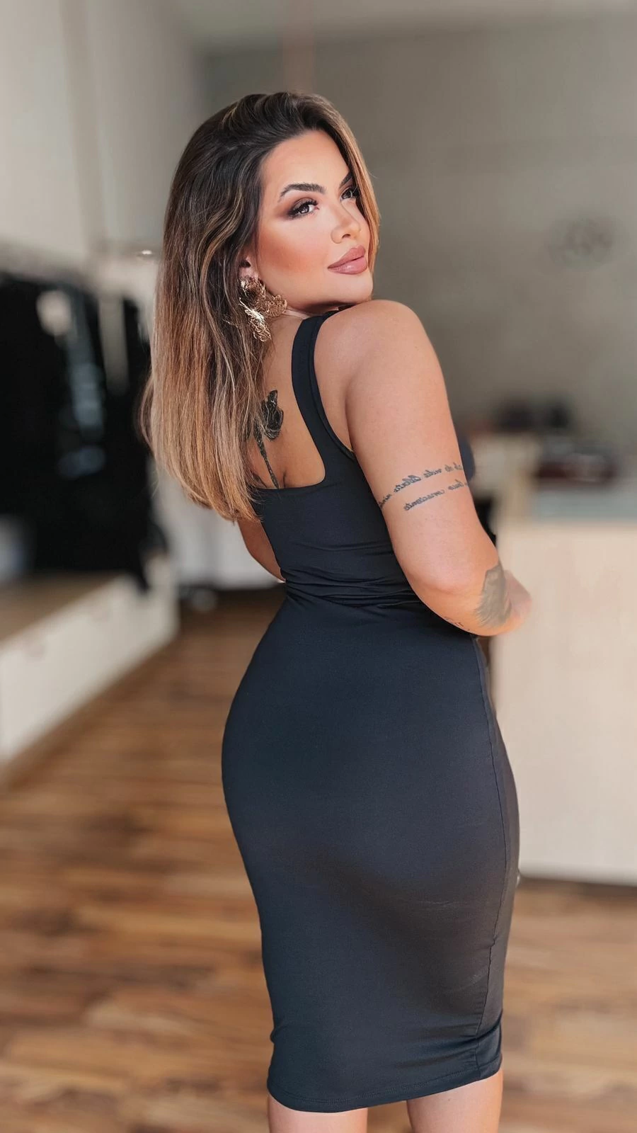 Vestido midi no tecido poliamida premium regata e decote quadrado